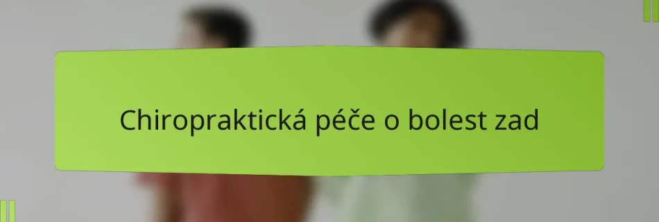 Chiropraktická péče se zaměřuje na diagnostiku a léčbu muskuloskeletálních poruch, zejména na nesprávné zarovnání páteře. Chiropraktici používají manuální úpravy k zlepšení funkce páteře, což může zmírnit bolest zad a zlepšit celkovou pohyblivost. Pravidelné návštěvy mohou vést k dlouhodobým přínosům pro trpící chronickou bolestí zad.