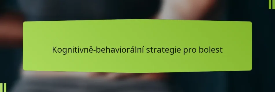 Kognitivně-behaviorální strategie pro zvládání bolesti jsou efektivní techniky navržené tak, aby pomohly jednotlivcům přetvořit jejich vnímání bolesti a vyvinout zdravější mechanismy zvládání. Zaměřením na změnu negativních myšlenkových vzorců a zlepšení dovedností zvládání tyto strategie řeší psychologické faktory, které přispívají k chronické bolesti, a nakonec zlepšují jak zvládání bolesti, tak celkovou kvalitu života. Key sections in …