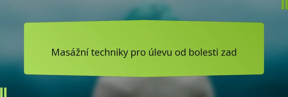 Masáže mohou pomoci uvolnit napětí a zlepšit prokrvení zádových svalů. Techniky, jako je hluboká tkáňová masáž nebo terapie spoušťových bodů, mohou cílit na specifické oblasti nepohodlí, podporovat relaxaci a snižovat bolest. Mnoho lidí zjistí, že pravidelné masáže přispívají k jejich celkové strategii zvládání bolesti zad.