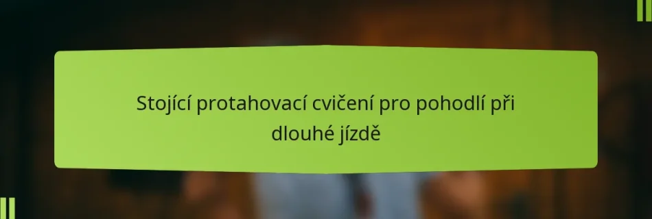 Stojící protahovací cvičení pro pohodlí při dlouhých jízdách jsou nezbytné pohyby, které zvyšují flexibilitu a zmírňují svalové napětí. Začleněním těchto protahování před a po jízdě můžete zlepšit prokrvení a předejít ztuhlosti, což zajistí pohodlnější cestování. Key sections in the article: Toggle Co jsou stojící protahovací cvičení pro pohodlí při dlouhých jízdách? Definice a účel stojících …