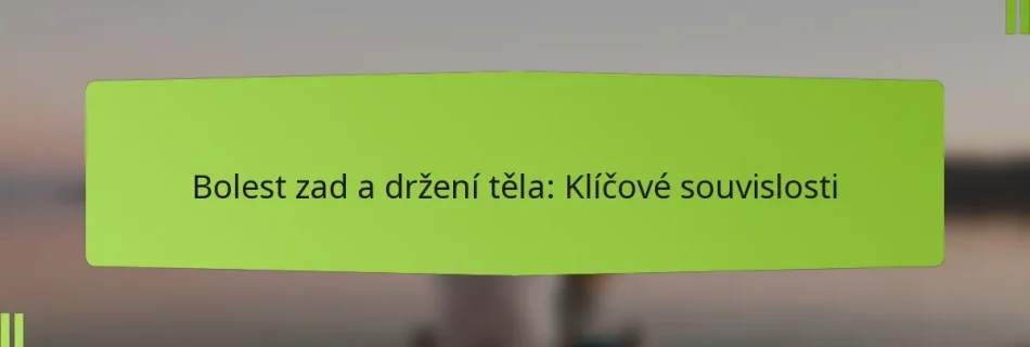 Bolest zad je často přímým důsledkem špatného držení těla, které může vyvíjet nadměrný tlak na páteř a její podpůrné svaly. Udržováním správného zarovnání mohou jednotlivci zmírnit nepohodlí a předejít budoucím problémům, což vede k celkovému zlepšení zdraví. Začlenění cvičení, která zlepšují držení těla a posilují záda, může dále přispět k dlouhodobé úlevě a pohodě. Key …