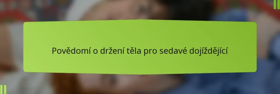 Vědomí o držení těla je zásadní pro sedavé dojíždějící, kteří tráví dlouhé hodiny sezením, protože zahrnuje rozpoznávání a udržování správného zarovnání těla. Tím, že si budou vědomi svého držení těla, mohou dojíždějící zmírnit nepohodlí a předejít běžným problémům, jako jsou bolesti zad a napětí v krku, což nakonec zlepší jejich celkovou pohodu během cestování. Key …