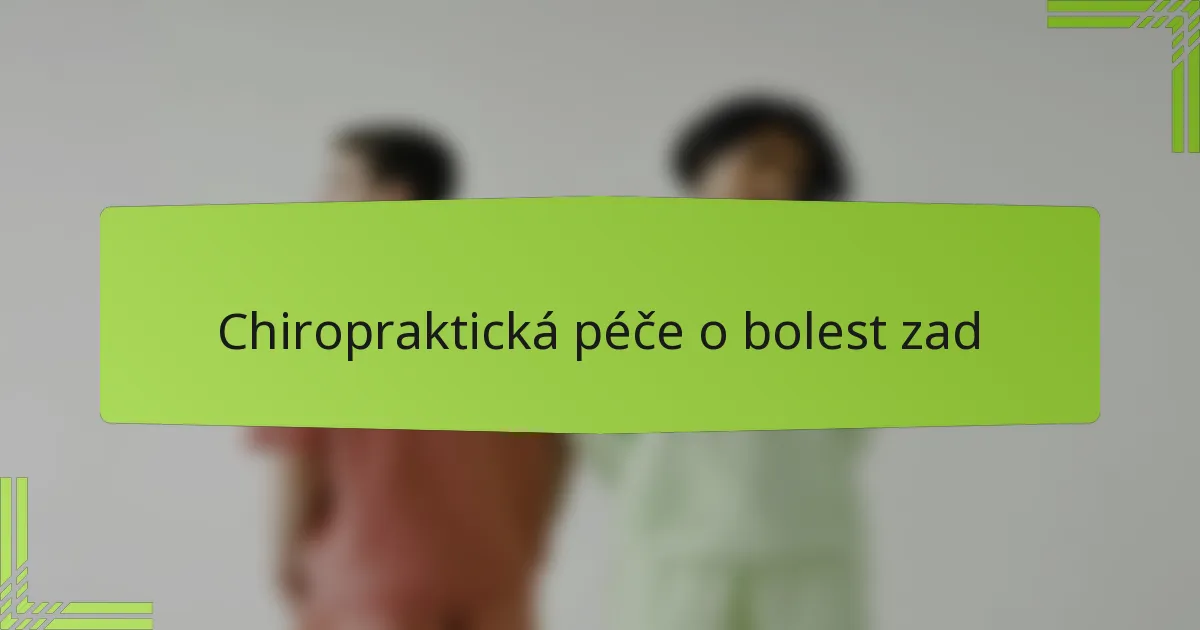 Chiropraktická péče o bolest zad se zaměřuje na diagnostiku a léčbu muskuloskeletálních poruch, především prostřednictvím manipulace s páteří. Tento holistický přístup si klade za cíl zlepšit funkčnost, snížit bolest a zlepšit celkové zdraví bez silného spoléhání na léky nebo invazivní postupy.