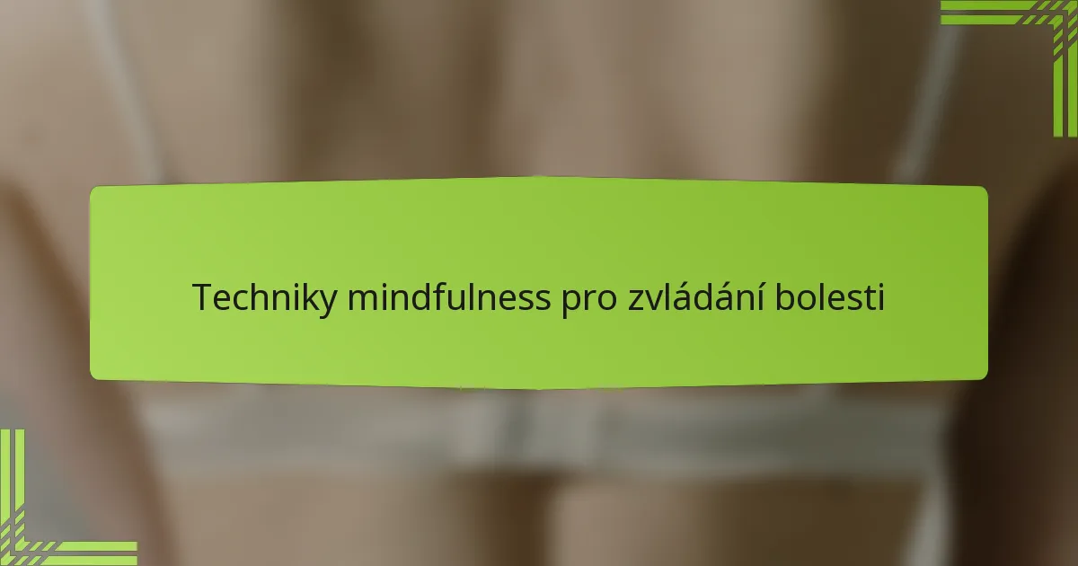Techniky mindfulness často zahrnují meditaci, dýchací cvičení a skenování těla, které mají za cíl zvýšit uvědomění si tělesných pocitů a myšlenek. Tyto praktiky povzbuzují jednotlivce, aby uznali svou bolest, zatímco podporují pocit přijetí a klidu.