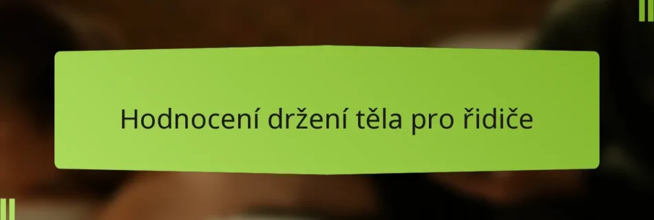 Hodnocení držení těla řidičů je nezbytné pro posouzení, jak je tělo řidiče zarovnáno a umístěno za volantem. Správné držení těla nejen zvyšuje pohodlí a snižuje únavu, ale také hraje zásadní roli při zajištění bezpečných jízdních praktik. Identifikací a nápravou špatného držení těla mohou řidiči zmírnit zdravotní rizika a zlepšit svůj celkový zážitek z jízdy. Key …